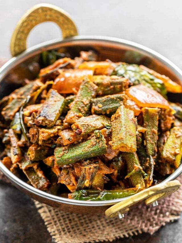 सामग्री- भेंडी, राईचे तेल, हींग, जीरे, बडीशेप, मेथीचे दाणे, मोहरी, हळद, बारीक चिरलेला कांदा,धणे पावडर