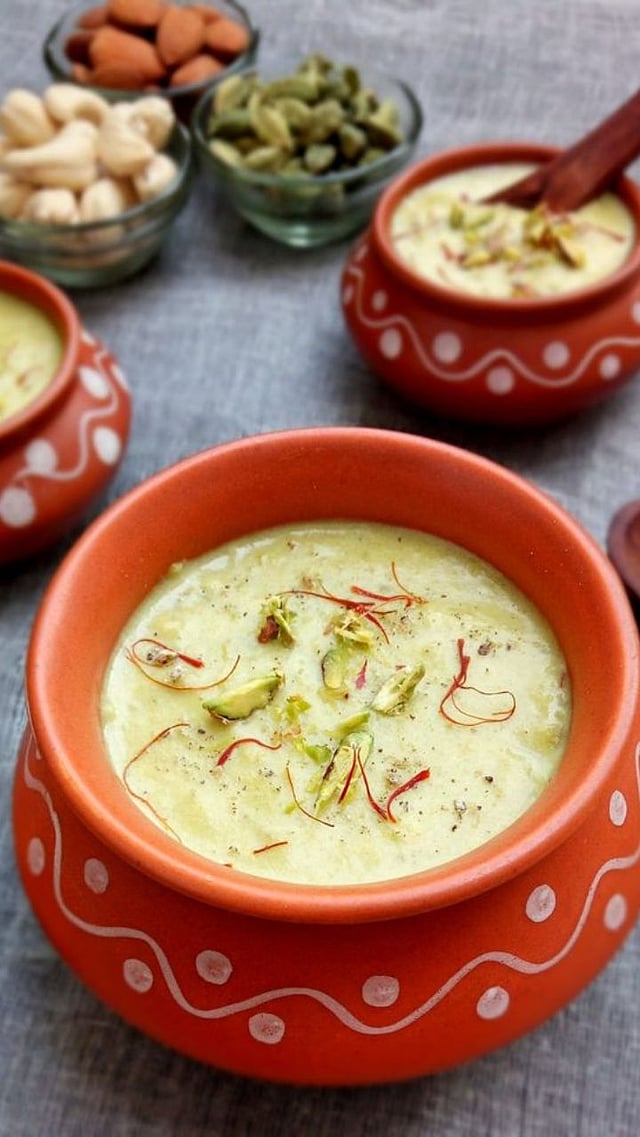 थंड रबडीवर थोडे ड्रायफ्रूट्स पसरवून सर्व्ह करावी. खास प्रसंगांसाठी ही एक खास मिठाई आहे.