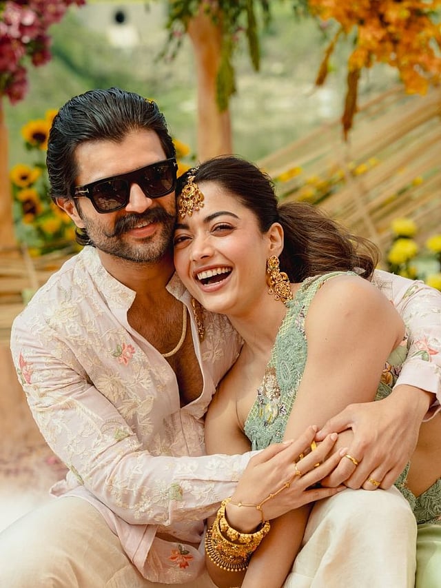 हळदींच्या फोटोंमध्ये रश्मिका- विजयचा रोमँटिक अंदाज पाहायला मिळत आहे. दोघे एकत्र खूप आनंदी आणि क्यूट दिसत आहे. रश्मिका- विजय हे साऊथ इंडस्ट्रीचे पावर कपल आहे.