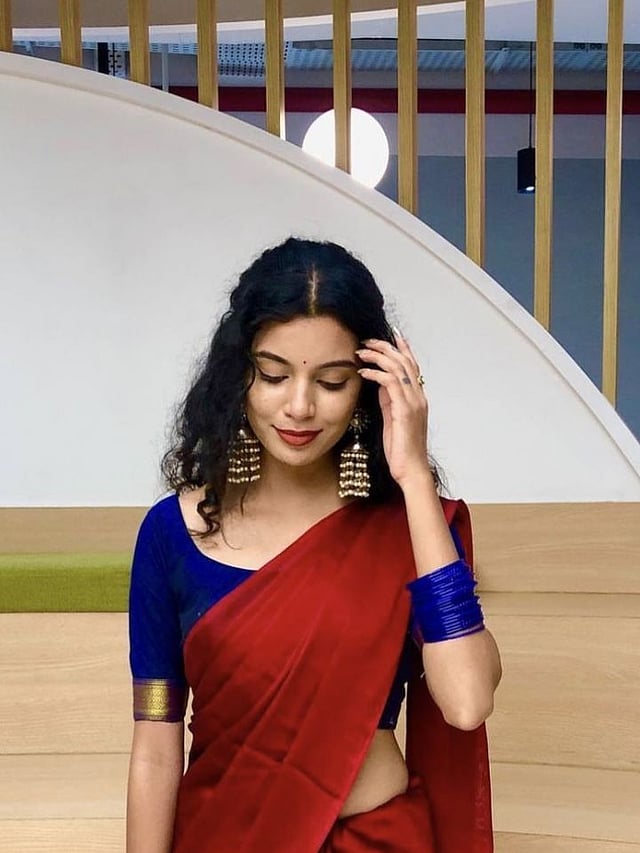 रेड साडीवर पिवळा किंवा मस्टर्ड ब्लाउज ट्रेडिशनल आणि फ्रेश लूक देतो.
