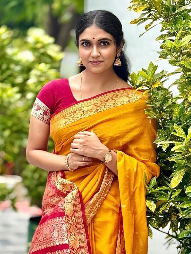 रिंकू राजगुरुने छान पिवळ्या रंगाची काठपदर साडी नेसली आहे. त्यावर छान झुमके घातले आहेत.