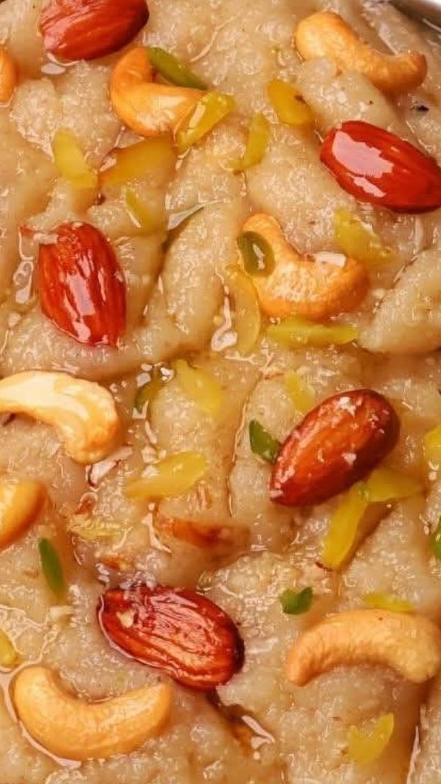 साजूक तुपातली मऊ लुसलुशीत शिरा सर्व्हसाठी तयार आहे.