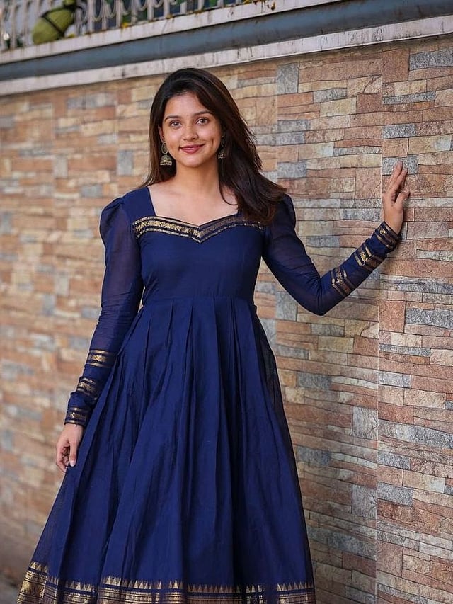 जुन्या साडीच्या कापडापासून सुंदर अनारकली ड्रेस तयार करता येतो. साडीचा पल्लू आणि बॉर्डर वापरल्यास ड्रेस अधिक आकर्षक दिसतो.