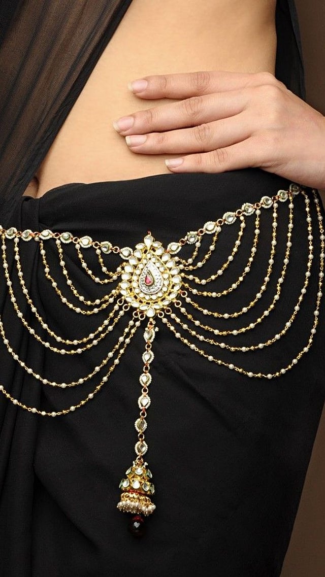 कुंदन, रंगीत मोती किंवा हिरे असलेले हेव्ही कमरपट्टा तुम्ही डिझाइनर साडीवर वेअर करू शकता.
