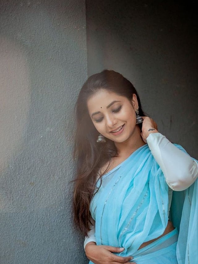 या फोटोमध्ये तिने निळ्या रंगाची साडी परिधान केली आहे.