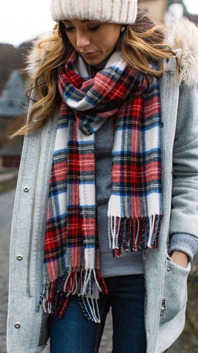 चेक्स स्कार्फमध्ये लाल, निळा, राखाडी किंवा हलका पिवळा रंगाची निवड करा. हे स्कार्फ मुलांना देखील चांगले वाटतात.