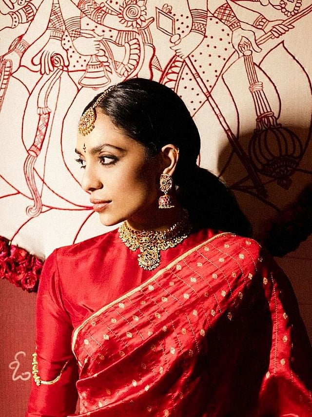 शोभिताचा लाल साडीतील लूक पारंपरिक प्रसंग किंवा समारंभासाठी एक फॅशन स्टेटमेंट बनू शकतो.