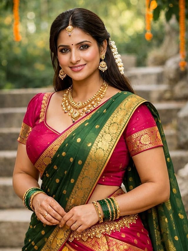 'इंडो-वेस्टर्न' लूक हवा असेल, तर तुम्ही पेपलम स्टाईल ब्लाऊज आणि सिल्क घागरा निवडू शकता. यावर साडीचा किंवा जरीचा 'कमरपट्टा' घ्या.