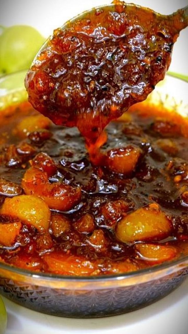 आवळे, कोथिंबीर, हिरव्या मिरच्या, जिरं, आलं, गुळ, मीठ इ.