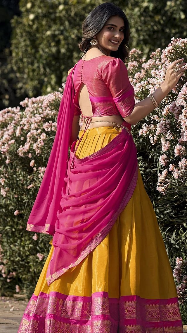 सध्या ब्लाउजमध्ये स्पॅगेटी स्ट्रॅप पॅटर्न खूप लोकप्रिय होत आहे आणि तुम्ही ते विविध प्रकारच्या पोशाखांसोबत स्टाइल करू शकता. तुम्ही यात तुमच्या स्किन टोननुसार रंग निवडा.