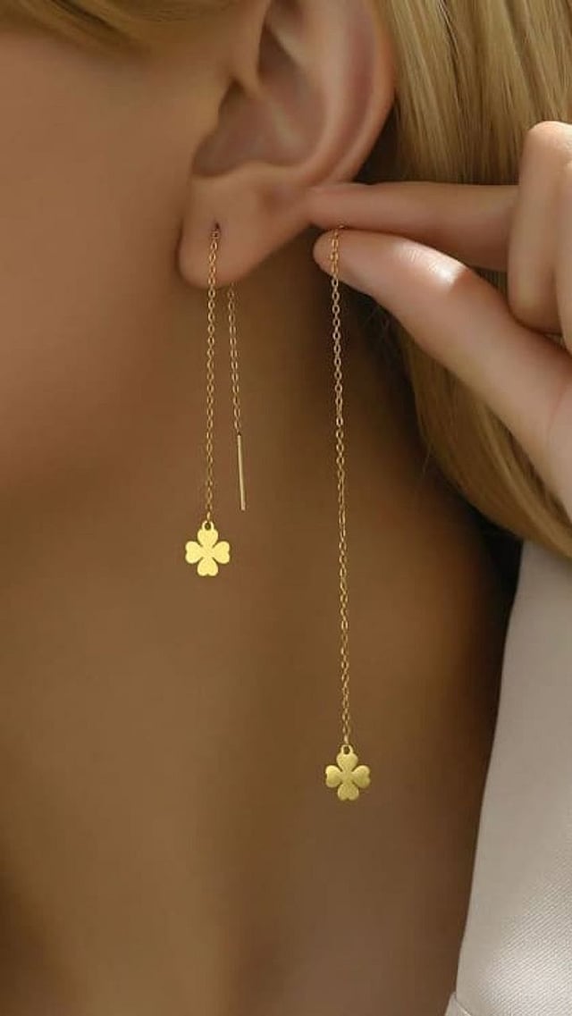 रॉयल लूक हवा असेल तर हे गोल्ड फ्लॉवर सुई-धागा इअररिंग डिझाइन छान आहेत. यात पातळ सोन्याच्या चेनवर बेसला एक लहान सोन्याचं फूल असते.