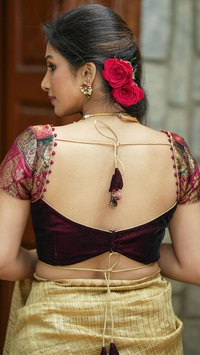 बॅकलेस ब्लाउज नेहमीच ट्रेंडमध्ये आहेत. नेहमीच्या वापरासाठी असो किंवा खास प्रसंगी ते एक स्टायलिश लूक देतात. तुम्ही हा ट्रेंडी बॅकलेस पर्याय देखील वापरून पाहून शकता. रिबन आणि दोरी असलेला हा पॅटर्न अतिशय आधुनिक लूक देईल.