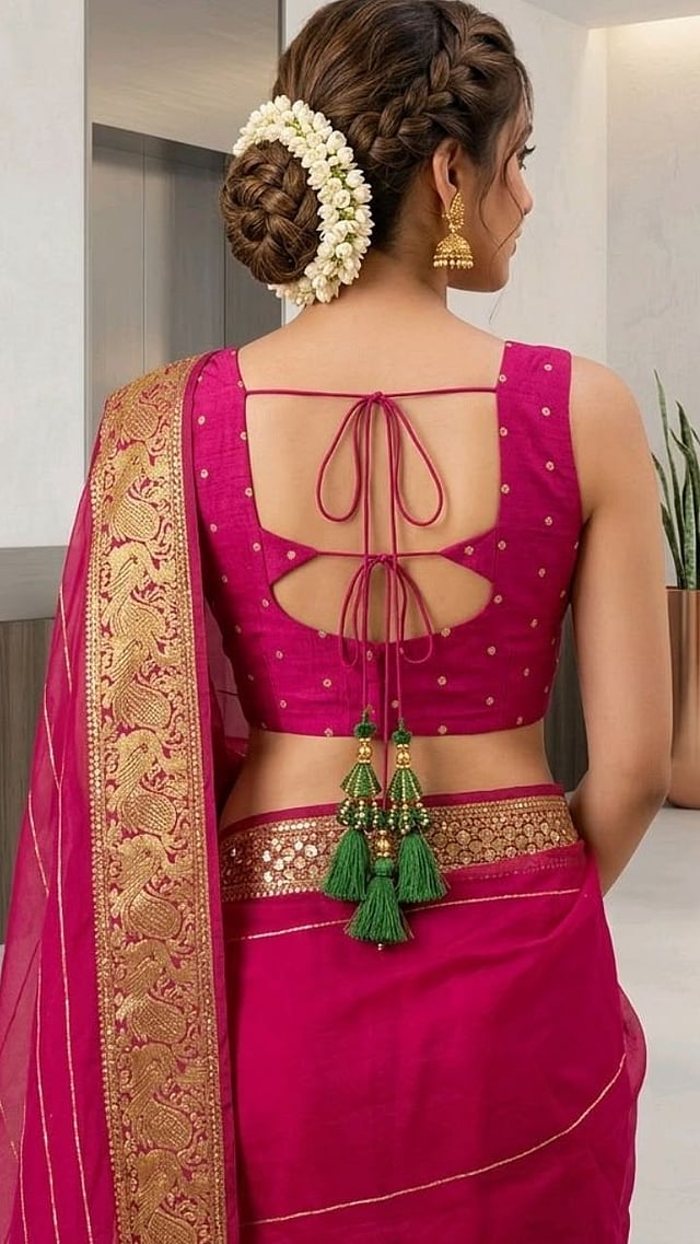 कॉटन व्ही-नेक ब्लाउज उन्हाळ्यात सर्वात आरामदायी आहे. यात ऑफिस, कॅज्युअल आउटिंग, सण-समारंभासाठी हा खूपच खास आहे. बॅकलेस ब्लाउज पार्टी किंवा रिसेप्शनसाठी उत्तम ठरेल.