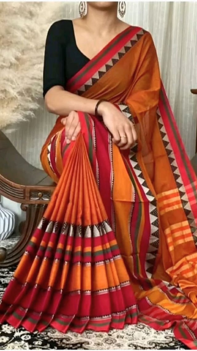 मध्य प्रदेशातील माहेश्वर येथे बनणाऱ्या या साड्या त्यांच्या खास काठ आणि पदरासाठी ओळखल्या जातात. यामध्ये सहसा भौमितिक डिझाईन्स असतात. ऑफिस किंवा खास प्रसंगांसाठी ही साडी उत्तम पर्याय ठरते.