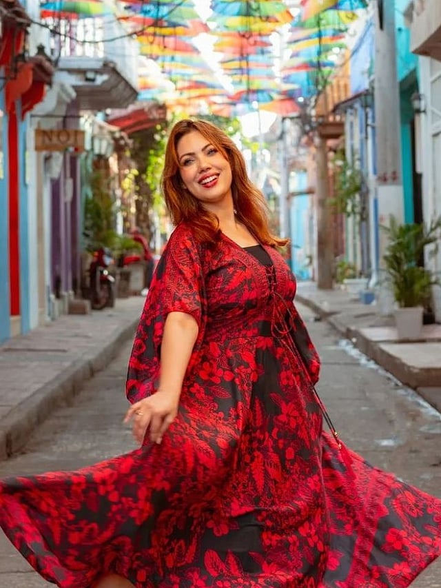 रेड अँड ब्लॅक फ्लोरल प्रिंटेड वनपिस वेअर करत अभिनेत्रीने खूप सुंदर फोटोशूट केले.