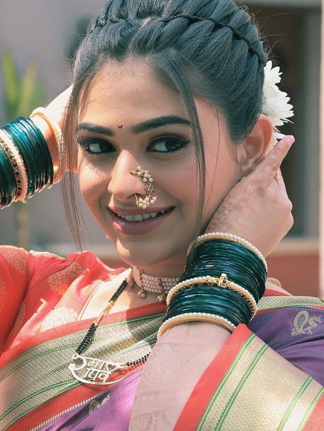तिच्या नाकातल्या नथणीने आणि तिच्या गळ्यातल्या ‘रमा राघव’च्या लॉकेटने सर्वांचेच लक्ष वेधलेय.