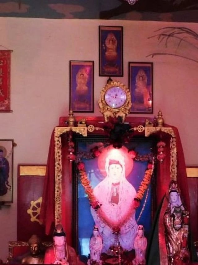 मंदिरात बुद्ध आणि इतर पूज्य व्यक्तींच्या मूर्ती आहेत.