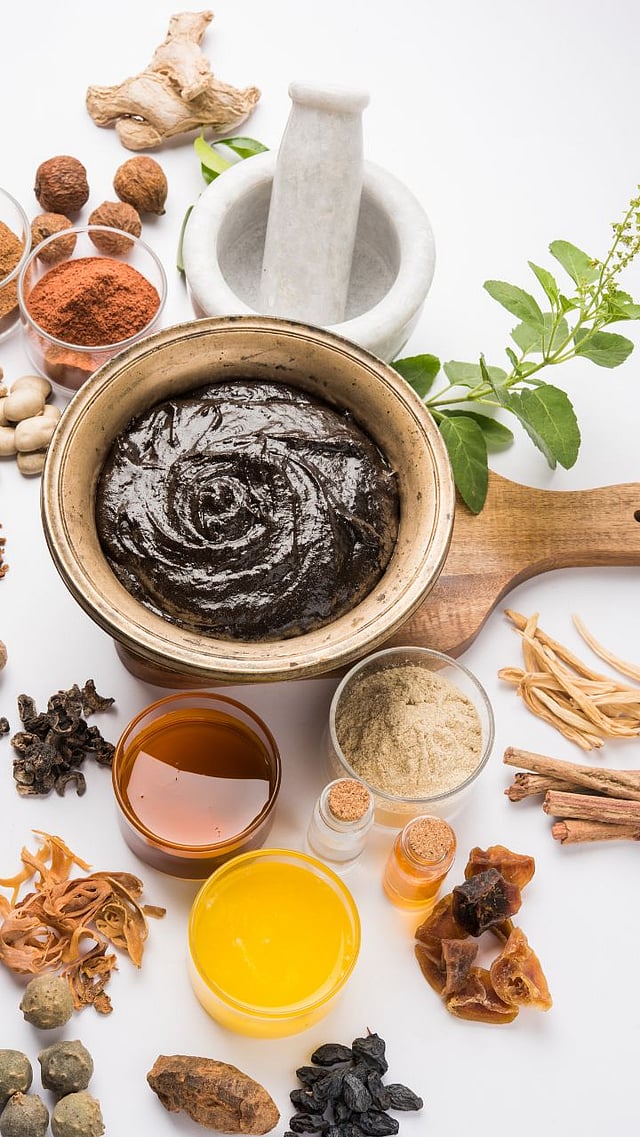 च्यवनप्राशमध्ये मध, साप केशर, पांढरी मुसळी आणि तमालपत्र यांसारखे गुणधर्म असतात.