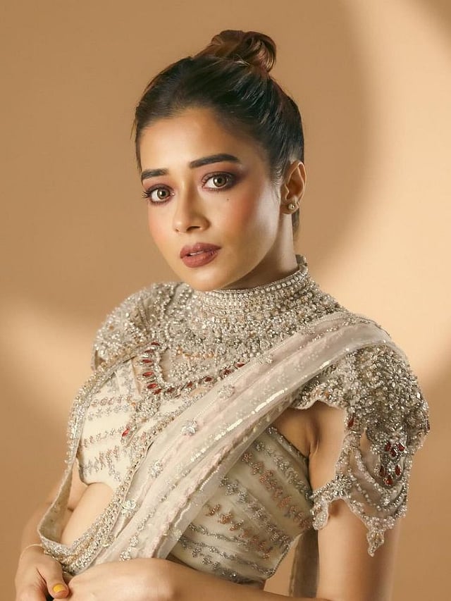 यावेळी तिने क्रिम रंगाची साडी परिधान केली आहे.