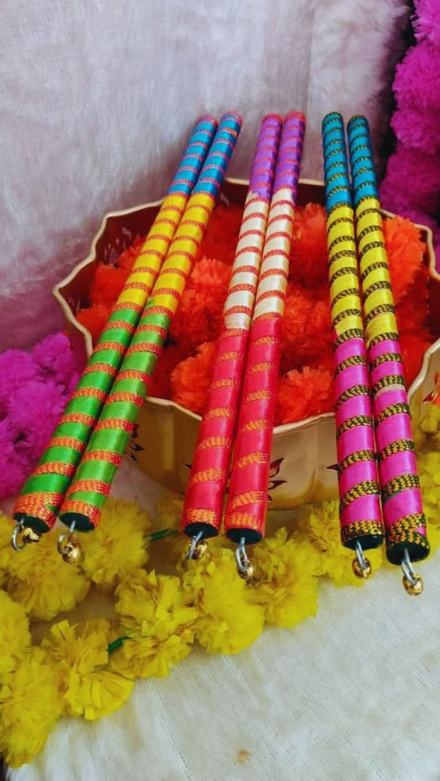 बाजारात दांडिया वेगवेगळ्या आकाराच्या आणि रंगांच्या मिळतात.
