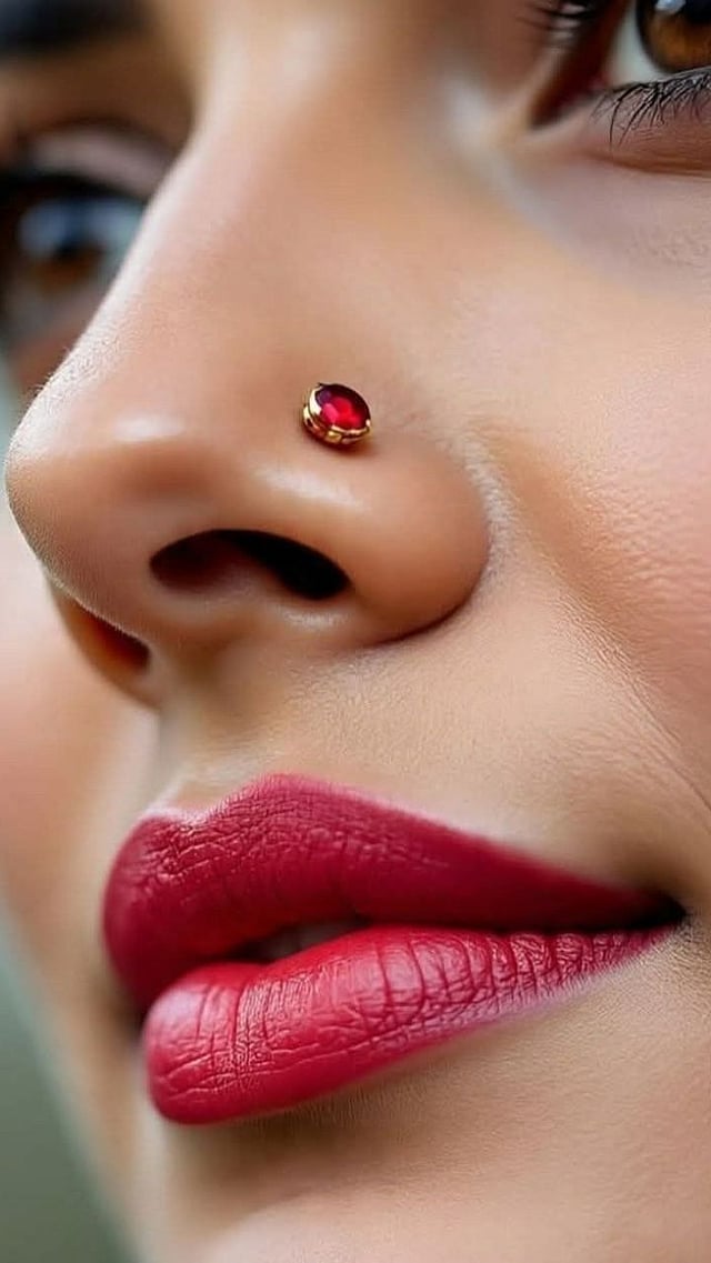 सध्या खड्यांच्या नोज पिन मुली व महिला पसंत करतात खड्यांच्या नोज पिन तुम्ही घेऊ शकता. पाचू आणि डायमंड वर्क केलेल्या या नोज पिन खुपच सुंदर दिसतात.