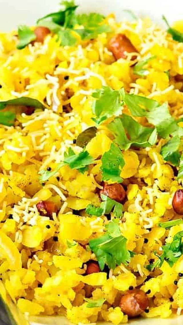 फोडणीच्या सुरुवातीला शेंगदाणे तेलात तळून बाजूला काढून ठेवा. पोहे पूर्ण तयार झाले की वरून शेंगदाणे टाका