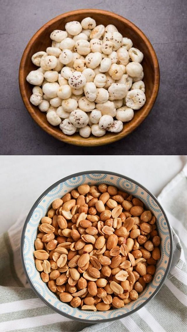 मखाणे कमी कॅलरीचे असतात, तर शेंगदाण्यांमध्ये कॅलरी जास्त असल्याने वजन कमी करताना मखाणे अधिक योग्य ठरतात.