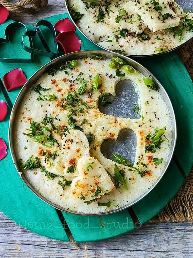 मिश्रण संपूर्ण सुकायला आणि फुलायला साधारण १५ मिनिटे लागतील. नंतर ढोकळ्याची फोडणी तयार करा.