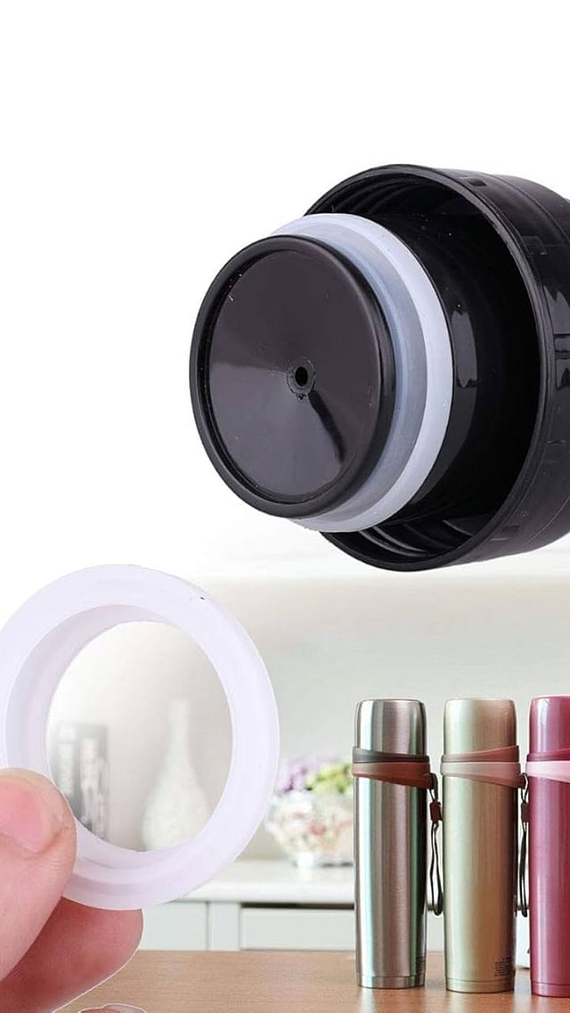 झाकणाला हवा घट्ट करण्यासाठी आणि झाकणाच्या आत असलेल्या बाटलीच्या तोंडाला योग्य पकड देण्यासाठी झाकणावर रबर असतो.