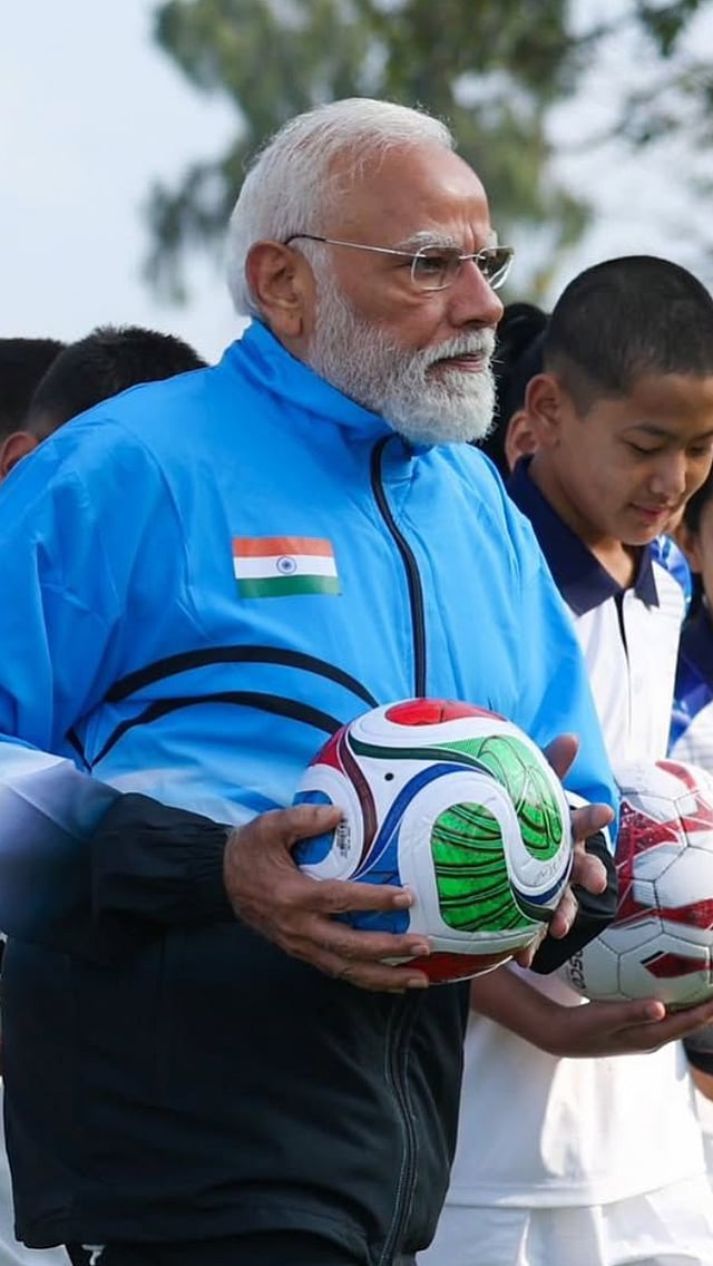 पंतप्रधानन मोदी सकाळीच फुटबॉलच्या मैदानात उतरले होते. यावेळी त्यांनी तरूणांसोबत संवाद साधला आणि आणि युवकांसोबत खेळाचा आनंद लुटला.
