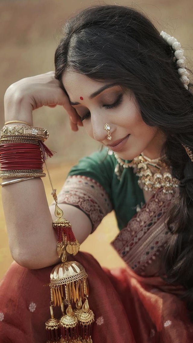 मराठमोळ्या अंदाजात वृषिकाने नाकात नथ, गळ्यात हार, हातात बांगड्या असा लूक केला आहे.