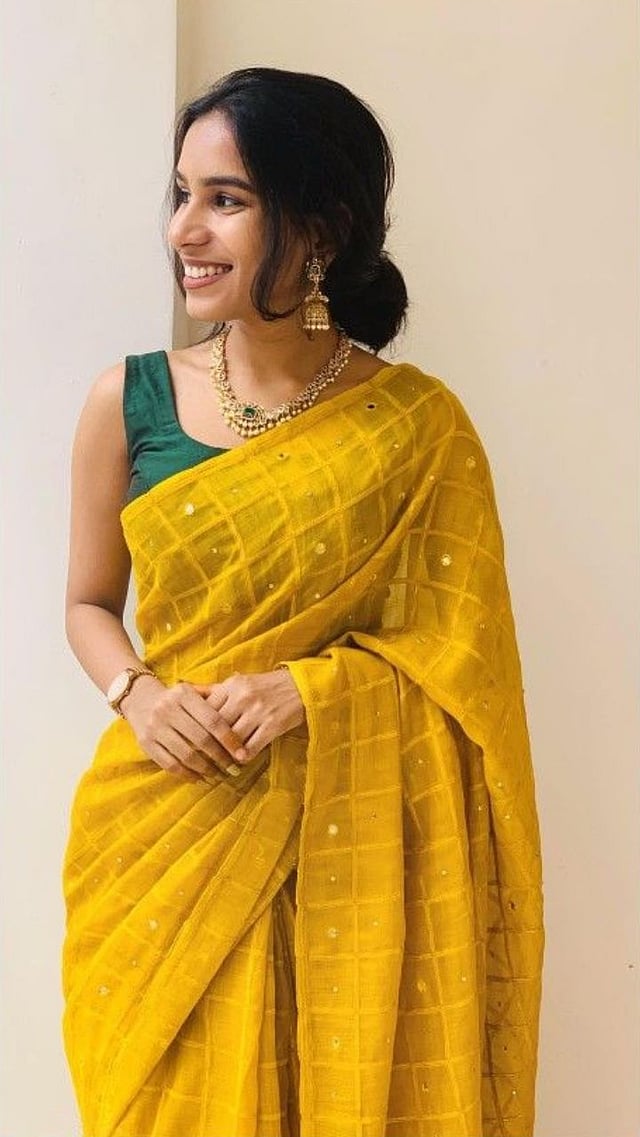 लग्नसमारंभातील हळदीसारख्या प्रसंगांसाठी हलकी, पण चमकदार पिवळी साडी आकर्षक ठरते.