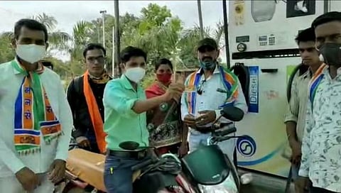 गोंदिया - महाराष्ट्र नवनिर्माण सेनाचे MNS सर्वेसर्वा राज ठाकरे Raj Thackeray यांच्या वाढदिवसानिमित्त Birthday मनसे तालुका सालेकसा यांच्या वतीने व मनसे महिला सेनेचे सालेकसा यांच्या संकल्पनेने, वाढत्या पेट्रोलच्या किंमतीच्या निषेधार्थ महाराष्ट्र शासन Maharashtra Government आणि केंद्र शासनाचे Central Government निषेध नोंदवत तालुक्यातील जनतेला 10 रुपये प्रति लिटर पेट्रोल स्वस्त देण्याचा उपक्रम हाती घेण्यात आला. On the occasion of Raj Thackeray's birthday, MNS gave relief to the citizens