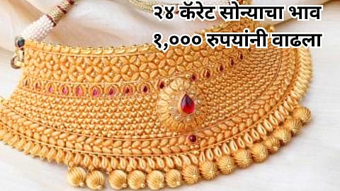 २४ कॅरेट १ तोळा सोन्याचा भाव आज १ हजार रुपयांहून वाढला आहे. त्यामुळे १० ग्राम सोन्याचा भाव ७१,७७० रुपये आहे. तर १०० ग्राम सोन्याच्या किंमती ७,१७,७०० रुपये आहेत. ८ ग्रामचा भाव ५६,४१६ रुपये आणि १ ग्राम सोन्याची किंमत आज ७,१७७ रुपये आहे.