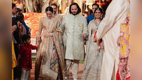 अत्यंत शाही आणि "न भूतो न भविष्यति" अशा पद्धतीने शुक्रवारी (१२ जुलै) अनंत अंबानी आणि राधिका मर्चंट यांचा विवाहसोहळा पार पाडला. गेल्या अनेक दिवसांपासून त्यांच्या लग्नाची सोशल मीडियावर जोरदार चर्चा होत आहे. साखरपुडा, दोन प्री- वेडिंग, संगीत, मेहंदी आणि हळद अशा वेगवेगळ्या कार्यक्रमांतून त्यांच्या लग्नाची जोरदार चर्चा झाली. अशातच सध्या सोशल मीडियावर लग्नातील काही व्हिडिओ व्हायरल होत आहेत. सप्तपदी घेतल्यानंतर राधिका आणि अनंत यांनी एकमेकांना वचन दिलेय. वचन घेतानाचे काही व्हिडिओ सध्या सोशल मीडियावर तुफान व्हायरल होत आहे.