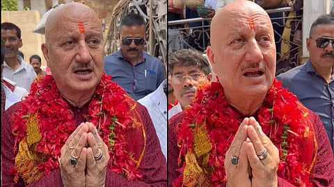 अनुपम खेर यांनी यावेळी मरून रंगाचा लांब बाह्यांचा कुर्ता आणि पांढरा पायजमा घातला होते. अभिनेत्याला पाहण्यासाठी मंदिर परिसरात गर्दी झाली होती. अनुपम खेर यांनी आपल्या ट्विटरवर व्हिडिओ पोस्ट केला आहे. व्हिडिओमध्ये अनुपम खेर कालीघाट मंदिर परिसरात हात जोडून फिरताना दिसत आहेत. त्यांच्या गळ्यात अनेक फुलांच्या मला आणि कपाळावर गंध आहे .