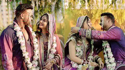 दिव्या अग्रवाल आणि अपूर्व पाडगांवकरने मुंबईतच मित्र परिवार आणि जवळच्या नातेवाईकांच्या उपस्थितीत साधेपणाने लग्न केले. लग्नामध्ये हे कपल खूपच क्युट दिसत होते. दिव्या आणि अपूर्वने मागच्यावर्षी साखरपुडा केला होता. आता त्यांनी लग्न केले आहे. या कपलच्या लग्नाचे फोटो सोशल मीडियावर व्हायरल होत आहेत. दिव्याच्या चाहत्यांनी आणि तिच्या सेलिब्रिटी फेंड्सने शुभेच्छांचा वर्षाव केला आहे.
