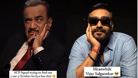 अजय देवगणने शेअर केलेल्या व्हिडिओमध्ये तो एका टेबलासमोर बसलेला दिसत आहे. त्याच्यासमोर सीआयडीची टीमही दिसत आहे. ते काहीसे त्रासलेले दिसत आहेत असून 2 आणि 3 ऑक्टोबरला काय झाले? त्या घटनेचे गुढ उकलण्याचा प्रयत्न करताना दिसत आहे.