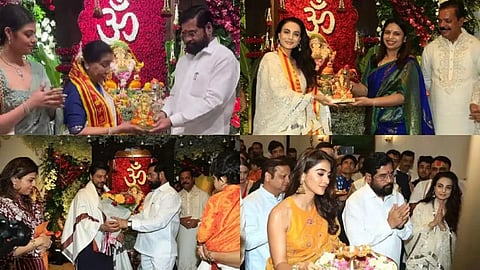 यावेळी मुख्यमंत्री एकनाथ शिंदे यांच्या घरी गायिका आशा भोसले, सलमान खान, बहिण अर्पिता, शाहरुख खान, कार्तिक आर्यन, एकता कपूर, शिल्पा शेट्टी, अमिषा पटेल, रुपाली गांगुली,एल्विश यादव,सुनिल ग्रोव्हर,जॅकी श्रॉफ, सुनील शेट्टी, पूजा हेगडे अशा दिग्गज कलाकारांनी मुख्यमंत्र्यांच्या शासकीय निवासस्थानी लाडक्या गणरायाचे दर्शन घेण्यासाठी हजेरी लावली होती. (Bollywood Actor)