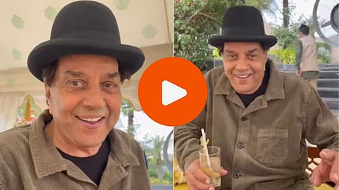 धर्मेंद्रने यांनी आपल्या अधिकृत इन्स्टाग्राम अकाऊंटवर शेअर केला आहे. या व्हिडीओमध्ये दिसत आहे की, धर्मेद्र हे सोफ्यावर बसले आहेत. त्यांनी ग्रे कलरचा शर्ट आणि पॅन्ट परिधान केली आहे. त्याचसोबत त्यांनी डोक्यावर ब्लॅक कलरची हॅट घातली आहे. हातामध्ये ज्यूसचे ग्लॅस घेऊन बसलेले धर्मेंद्र गाणं ऐकून अचानक थिरकू लागतात. उभं राहून ते डान्स करतात. मग अचानक कोणीतरी त्यांना बसायला सांगितले आणि ते खाली बसून नाचू लागतात.