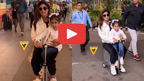 व्हायरल भयानीने आपल्या अधिकृत इन्स्टाग्राम अकाऊंटवर शिल्पा शेट्टीचा व्हिडीओ शेअर केला आहे. या व्हिडीओमध्ये शिल्पा शेट्टीच्या मांडीवर मुलीग समिषा बसलली दिसत आहे. शिल्पा आणि तिच्या मुलीने एकसारखीच ड्रेसिंग केली आहे. एखाद्या गाडीप्रमाणे शिल्पाची ट्रॉली बॅग पुढे-पुढे सरकताना दिसत आहे. शिल्पा शेट्टी अनेकदा अशाप्रकारे सूटकेस बॅगवर बूसन आली आहे. तेव्हा ती एकटी असायची पण यावेळी तिच्यसोबत तिची मुलगी समिषा देखील होती.