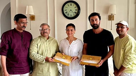 बॉलिवूड (Bollywood) अभिनेता रणबीर कपूर (Ranbir Kapoor) आणि आलिया भट्ट (Alia Bhatt) सध्या चर्चेत आले आहेत. आलिया आणि रणबीर त्यांच्या चित्रपट किंवा सोशल मीडिया पोस्टमुळे चर्चेत आले नाहीत. तर आलिया आणि रणबीर चर्चेत येण्यामागचे कारण म्हणजे त्यांना राम मंदिराच्या प्राण प्रतिष्ठान कार्यक्रमाचे निमंत्रण देण्यात आले आहे. रणबीर कपूर आणि आलिया भट्ट यांना स्वतंत्र आमंत्रण देण्यात आले आहे. याचे फोटो सध्या सोशल मीडियावर व्हायरल होत आहेत.