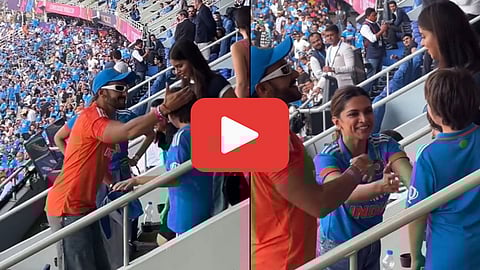वर्ल्डकपमधील टीम इंडिया विरूद्ध टीम ऑस्ट्रेलियाचा अंतिम सामना पाहण्यासाठी बॉलिवूड सेलिब्रिटींनी अहमदाबादच्या नरेंद्र मोदी स्टेडियमवर मोठी गर्दी केली होती. बॉलिवूडचा अभिनेता शाहरुख खान हा आपल्या कुटुंबासोबत याठिकाणी आला होता. यावेळी दीपिका पादुकोण आणि रणवीर सिंग यांना पाहून शाहरूख खानची मुलगी सुहाना आणि अबराम त्यांच्याकडे आले. यावेळी दीपिका आणि रणवीरने या दोघांवर प्रेमाचा वर्षाव केला. त्यांचा हा क्युट व्हिडीओ सध्या व्हायरल होत आहे.
