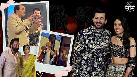 Karan Deol - Drisha Acharya's Sangeet Ceremony : देओल कुटुंबात सध्या लगीनसराई सुरू आहे. सनी देओलचा मुलगा करण देओल त्याची गर्लफ्रेंड द्रिशा आचार्च सोबत लग्नगाठ बांधणार आहे. नुकताच त्यांचा संगीत समारंभ पार पडला. संगीतसाठी करण आणि द्रिशाने ड्रेसिंगमध्ये ट्युनिंग केल आहे.