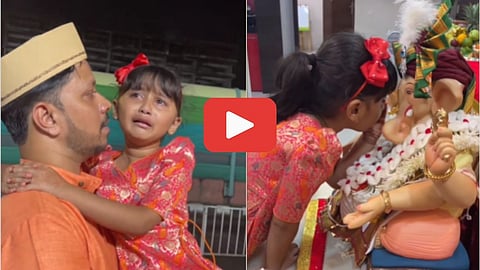 पर्पल मराठी या इन्स्टाग्राम पेजवरून मायरा वायकुळचा गणपती बाप्पाला निरोप देतानाचा व्हिडीओ शेअर करण्यात आला आहे. गणपती बाप्पाला निरोप देण्यापूर्वी मायरा बाप्पाच्या कानामध्ये काही तरी सांगत असल्याचे दिसत आहे. त्यानंतर विसर्जन करण्यासाठी बाप्पाची मूर्ती घेऊन जाताना काही मुलं दिसतात. बाप्पाला निरोप देताना मायराला रडू आवरत नाही. मायराचे बाबा तिला समजावण्याचा प्रयत्न करतात पण मायरा ढसाढसा रडतच राहिल्याचे व्हिडीओमध्ये दिसत आहे.