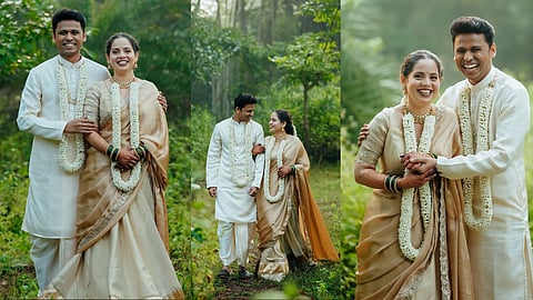 सोशल मीडियावर पृथ्वीकने लग्नाचे सुंदर फोटो शेअर केले आहेत. पृथ्वीकने प्राजक्ता वायकुळ हीच्याशी लग्न केले आहे. फोटो शेअर करत पृथ्वीकने, एक नवी सुरुवात व्हावी या ही बंधनाने,साक्षीदार व्हावं मग मोगऱ्याच्या ही सुगंधाने!असं कॅप्शन दिलं आहे. निसर्गाच्या सानिध्यात या दोघांनी वेडिंग खास फोटोशूट केलं आहे. ट्रेडिशनल लूकमध्ये दोघेंही अत्यंत सुंदर दिसत आहेत.