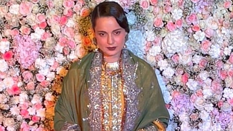 कंगना जेव्हा गाडीतून बाहेर आली तेव्हा तिला पडून लोकांना धक्काच बसला. कंगनाने मोहरी रंगाचा अनारकली सूट घातला होता, त्यात भरपूर नक्षीकाम केलेली ओढणी घेतली होती. कंगनाने ओल्ड स्टाईल हेअर स्टाईल केली होती.