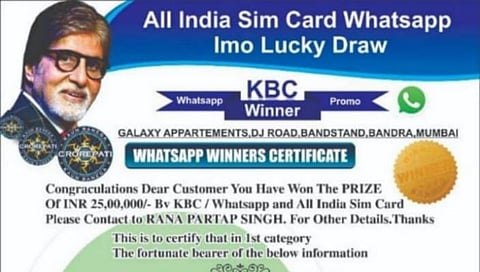 ह्या कुपनवर खालच्या भागात केबीसीची मोहर असून त्यावर अमिताभबच्चन याची सही आहे. ज्या wattsapp वरून हे कुपन आले आहे त्याचा नंबर 8194931956 ह्यावर कॉल केला असता तोपण बंद दाखवत आहे. ह्या कुपन सोबत एक ऑडिओ क्लिप दिली असून त्यात आपणास 25 लाख रुपये लागले असून स्टेट बँक ऑफ इंडिया मध्ये जमा झाले आहेत असे क्लिप मध्ये सांगण्यात आले आहे.