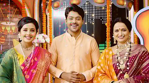 कविता मेढेकरने शिवानी रांगोळेसोबतचे सेल्फी शेअर केले आहेत. पहिला फोटो अक्षरा आणि अधिपती यांच्या साखरपुड्या दरम्यानचा आहे. तर दुसरा फोटो अधिपतीला काढला असून या फोटोमध्ये मालिकेतील तिन्ही मुख्य कलाकार आहेत.