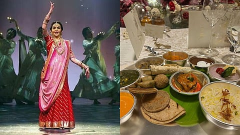 या चांदीच्या ताटामध्ये मेनू काय असेल? असा प्रश्न सर्वांना पडला असेल. तर या ताटामध्ये दिसत असलेल्या पदार्थांमध्ये दाल मखनी, पालक पनीर, शाही पनीर, पापड, लाडू, पराठा, रोटी यासह अनेक प्रकारच्या पदार्थांचा समावेश आहे. मिळालेल्या माहितीनुसार, या कार्यक्रमात नऊ प्रकारच्या डाळी होत्या. त्याचसोबत भारतीय संस्कृतीचे दर्शन घडवणारे पदार्थ मेनूमध्ये ठेवण्यात आले होते.